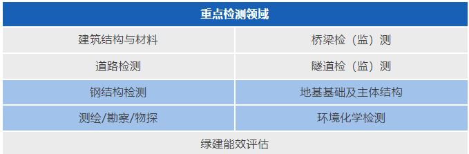 擁有交通部公路工程綜合甲級、橋隧專項檢測資質,住建部建設工程質量檢測資質,建設工程檢測機構評估證書、測繪甲級等資質,并通過CNAS、ISO等質量管理體系認證。主要從事道路、橋梁、隧道、建筑材料及構配件、鋼結構、地基基礎與主體結構、市政工程材料、建筑門窗幕墻、建筑節(jié)能、建筑環(huán)境、綠色建筑、人防工程等檢測,以及房屋結構安全鑒定、消防檢測與評估、能效測評、橋隧結構健康監(jiān)測、基坑監(jiān)測、工程測量、勘察物探等。