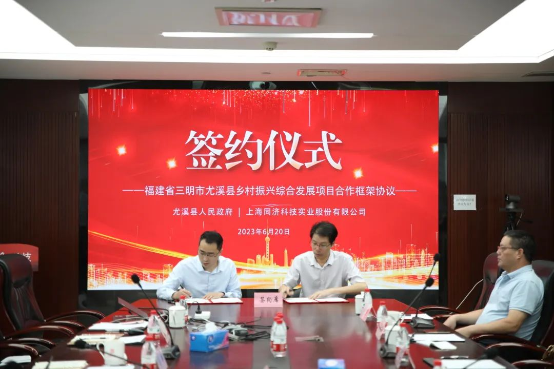 2023年6月20日上午,福建省三明市尤溪縣人民政府與上海同濟科技實業股份有限公司在公司20樓會議室舉行“福建省三明市尤溪縣鄉村振興綜合發展項目合作框架協議”簽約儀式。